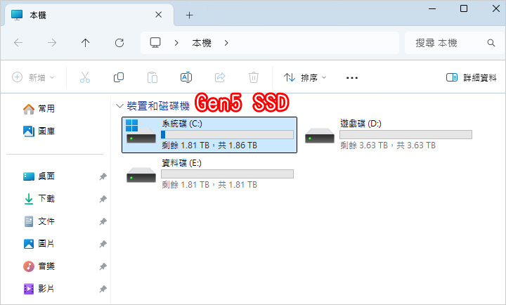 一般是雙SSD,本例是三SSD,而且C槽用Gen5 SSD。